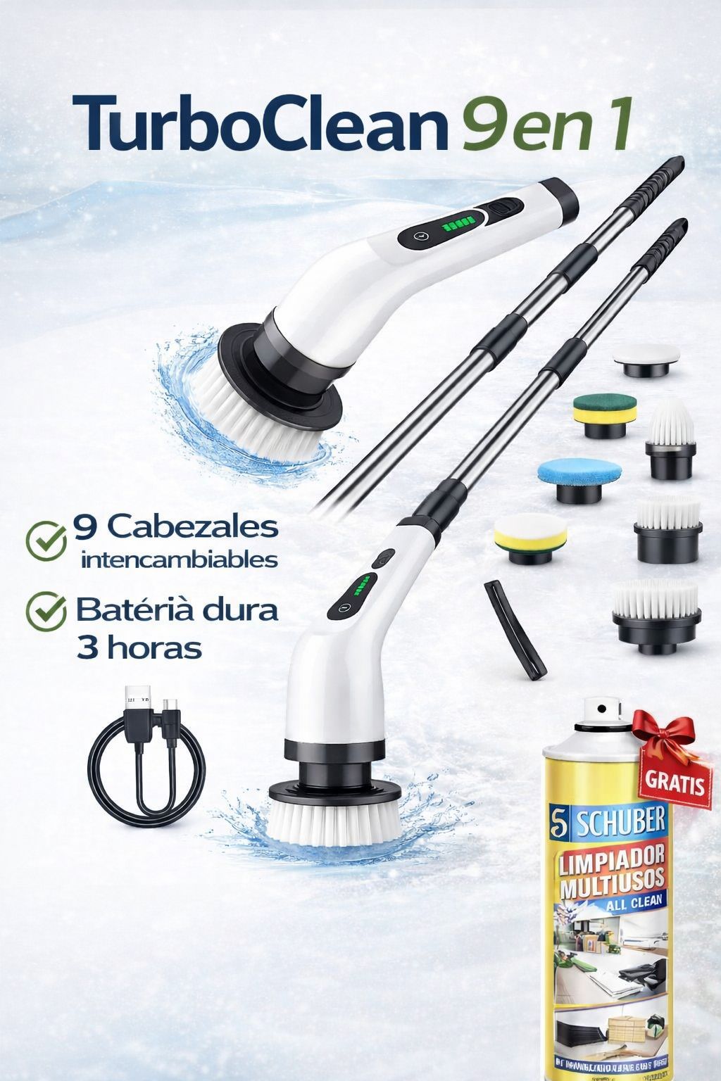 El TurboClean Pro 9 en 1 está diseñado para eliminar la suciedad más difícil sin que tengas que tallar ni cansarte. Ideal para baños, cocina, pisos y más.